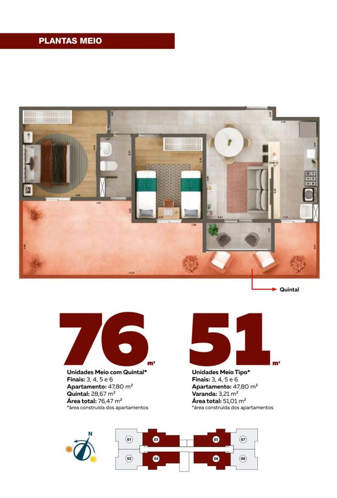 | Palmanova T2 lazer completo - Rio Claro SP, Brasil | 51 m2 | Preço sob consulta | Planta de 51m²(padrão) e 76m² | Ver Imóvel |