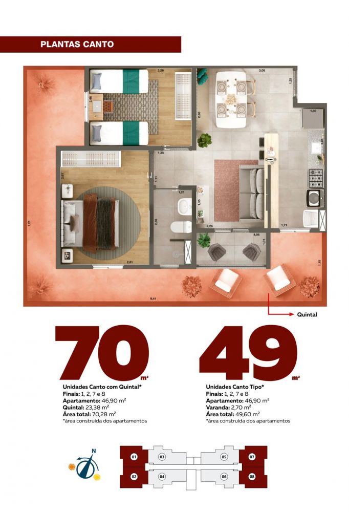 | Palmanova T2 lazer completo - Rio Claro SP, Brasil | 49 m2 | Preço sob consulta | Planta de 49m² (Padrão) e 70m² | Ver Imóvel |
