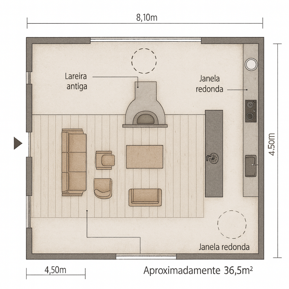 | Pavimento | Madeira envelhecida: | Sim |