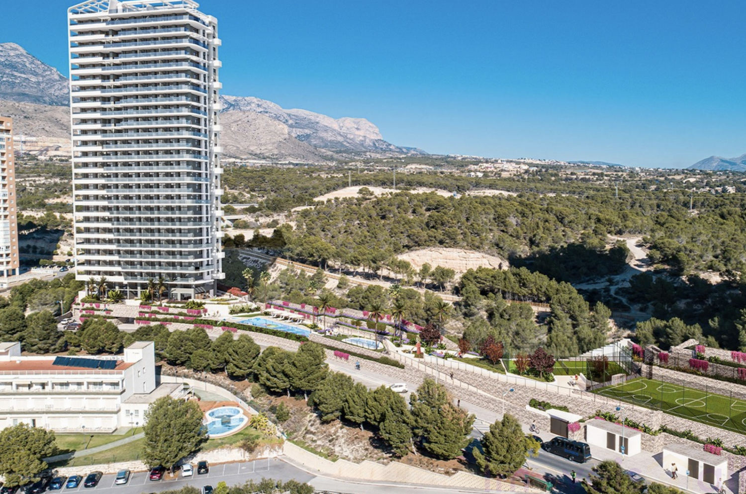 Imoveis4all apresenta um novo e exclusivo complexo residencial, composto por uma torre moderna que oferece uma gama diversificada de apartamentos de 1, 2, 3 e 4 quartos. Todas as unidades incluem uma vaga de estacionamento e contam com amplos terraços com guarda-corpos de vidro, maximizando a entrada de luz natural e as vistas panorâmicas. O complexo dispõe de 5.400 m² de áreas comuns, incluindo piscina para adultos, piscina infantil, duas jacuzzis, parque infantil, ginásio totalmente equipado, quadra de padel, quadra poliesportiva, áreas verdes e estacionamento para bicicletas. Com orientação sul, os apartamentos oferecem vistas privilegiadas para o mar e para o campo de golfe "Las Rejas". Cada apartamento inclui uma vaga de estacionamento e um depósito na garagem, e as vagas de estacionamento estão preparadas para a instalação de pontos de carregamento para veículos elétricos. Em relação aos acabamentos, os moradores podem escolher entre as opções Excellence ou Premium, permitindo-lhes personalizar suas casas de acordo com suas preferências e necessidades. Especificações: Características da opção Excellence: • Instalação de um amaciador de água comunitário. • Divisórias em gesso cartonado para um acabamento mais moderno e elegante. • Persianas de alumínio com isolamento térmico e acústico nos quartos. • Esquadrias externas em PVC com vidros duplos. • Piso em porcelanato em toda a propriedade. • Ar condicionado central em todos os cômodos. • Aquecimento de água por sistema aerotérmico com apoio elétrico. • Box de vidro em todos os chuveiros. • Espelhos com iluminação LED nos banheiros. • Sistema de ventilação completo para garantir a renovação do ar interno. • Cozinha equipada com bancadas em Silestone ou similar, pia embutida e espaço para lava-louças e geladeira. Características Premium: • Pré-instalação para jacuzzi no solário. • Piso em porcelanato de grande formato ou piso laminado. • Revestimento cerâmico de grande formato nas paredes dos banheiros. • Persianas e cortinas motorizadas. • Aquecimento de piso em toda a propriedade, exceto nos banheiros, onde é elétrico. • Cozinha com design italiano e equipada com eletrodomésticos de alta gama (SIEMENS ou BOSCH). • Metais sanitários Villeroy & Boch e torneiras Hansgrohe. • Solário privativo com pré-instalação para jacuzzi, ducha externa e bar com bancada em pedra natural. Entre em contato para mais informações ou participe de uma de nossas visitas guiadas sem compromisso para conhecer este projeto exclusivo.